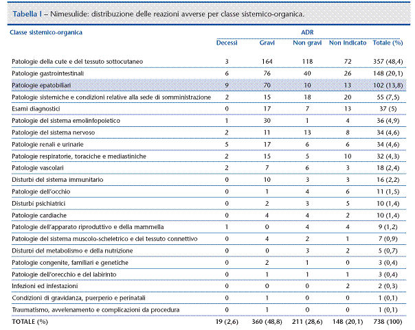 base di nimesulide dopo sei casi di insufficienza epatica grave