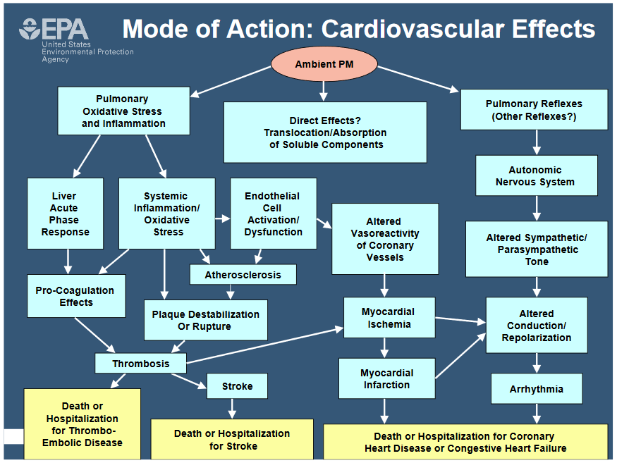 Già nel 1995 Seaton et al. proponevano un meccanismo di azione delle particelle acide ultra-fini, caratteristiche dell'inquinamento atmosferico. Queste causerebbero infiammazione alveolare, cambiamenti nella coagulabilità del sangue e rilascio di mediatori in grado di provocare sindromi respiratorie acute in soggetti sensibili.
